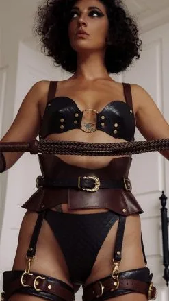 Liebe Seele LederTaillengürtel Schwarz-Braun-Gold