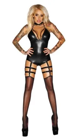 Noir Handmade Wetlook-Body Mit Strumpfhaltern
