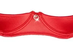 Rot wie die Liebe ist dieses 3-teilige Set, das aus Hebe, Strapshalter und String besteht. Die Hebe verfügt über stützende Bügel, gefütterte Cups und einen Hakenverschluss im Rücken. Die Träger sind verstellbar. Der Strapsgürtel hat einen Frontverschluss für leichtes Öffnen und vier verstellbare Strapshalter. Der passende String ist im Schritt einladend offen.