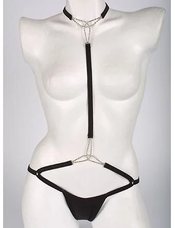 Exklusiver Stringbody mit Strasssteinverzierung. 100 % Polyamid.