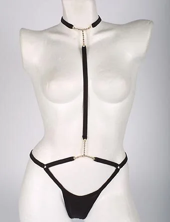 Exklusiver Stringbody mit Strasssteinverzierung. 100 % Polyamid.