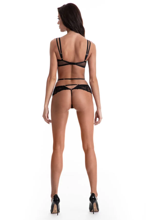 Diese Set besteht aus einem offenen Bürgel-BH und einem Ouvert-String mit Taillengurt. Die Bänder sind stufenlose verstellbar und sorgen für eine perfekte Passform. 80 % Polyamide, 20 % Elasthan.