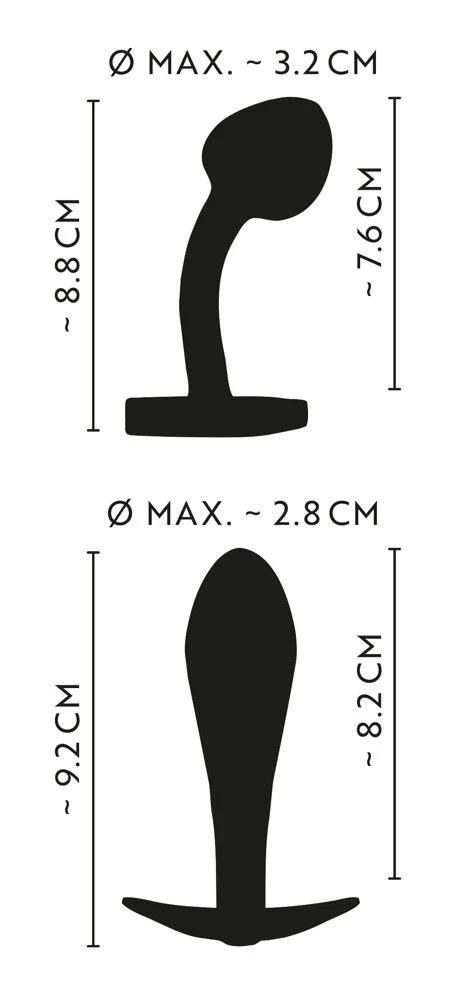 Beide glatt und nahtlos gefertigt und mit breitem Anker/Stopper für sichere Handhabung ohne Hineinrutschen. Auch längeres Tragen der angenehm schweren Metall-Plugs ist somit möglich. Dabei schmückt der klassische gerade Plug zusätzlich mit einem blauen Schmuckstein im Anker den Anus.