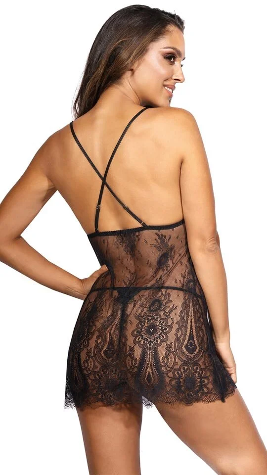 Edles Babydoll gefertigt aus einem Mix aus lederähnlichem Material sowie durchscheinendemTüll. Die Träger sind verstellbar. Das weiche Material liegt angenehmen auf der Haut. Lieferung mit passendem String.