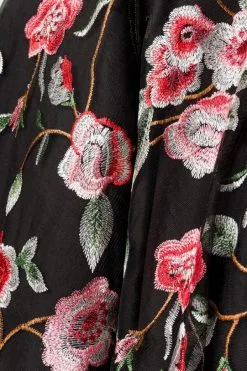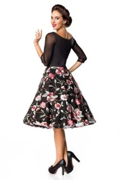 Belsira Premium besticktes Swingkleid Schwarz/Rosa