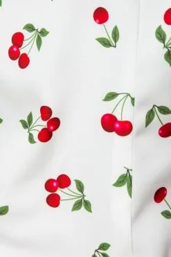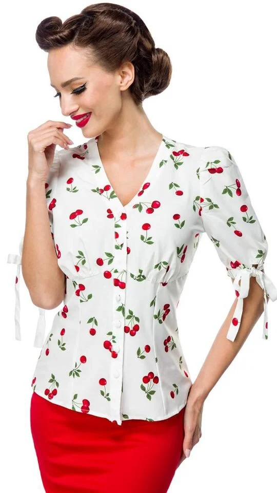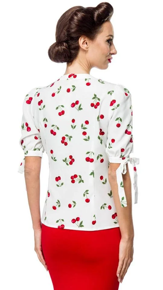 Belsira Vintage-Bluse mit Kirschenmotiv Weiß