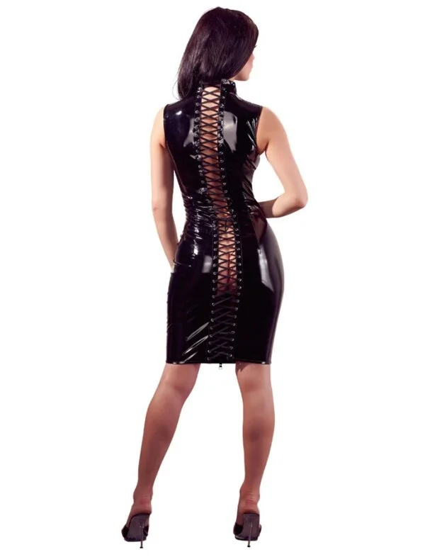 Schwarzes Lackkleid mit Zwei-Wege-Reißverschluss vorne und zwei