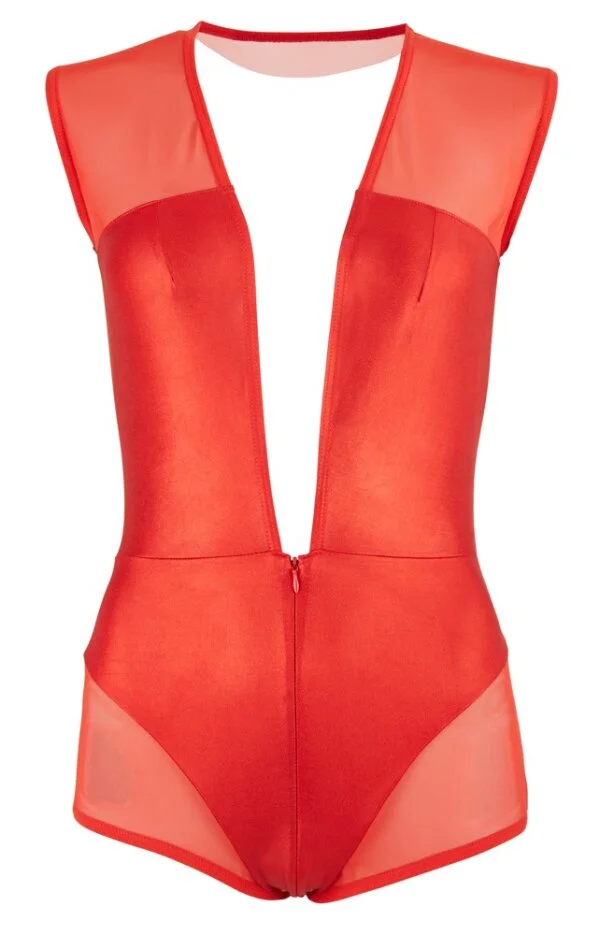Body aus Wetlook und Netz Rot