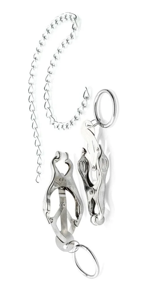 Brustklammern mit Kette, Klemmfläche mit Gummiauflage.