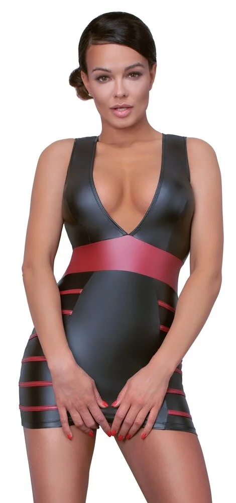 Figurbetonendes Wetlook-Kleid Schwarz/Rot