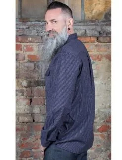 Dieses Hemd ist leger geschnitten und aus blau/weiß gestreifter Baumwollware angefertigt. Es passt perfekt zu Blue Jeans oder Chinos und hat aufgesetzte Taschen mit Patten sowie geschwungene Passen im Vorder- und Rückenteil. Ein Hingucker sind die Metallknöpfe mit Ankerprägung, die perfekt zum großartigen Streifenlook passen. Der Schnitt bietet genug Bewegungsfreiheit für einen angenehmen Tragekomfort, ist aber gleichzeitig auch noch eng genug geschnitten, um eine Weste darüber tragen zu können. Das Herrenhemd hat eine optimale Länge, so dass man es wahlweise über oder in der Hose tragen kann. Für schweißtreibende Situationen lässt es sich mittels der aufknöpfbaren Manschetten leicht hochkrempeln.