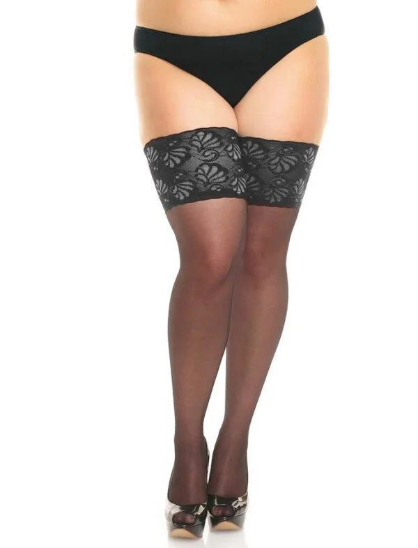 Diese halterlosen Strümpfe sind transparent und glänzend und haben einen