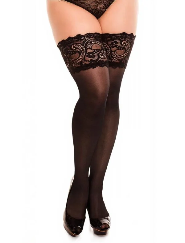 Diese halterlosen Strümpfe sind transparent und glänzend. Breiter