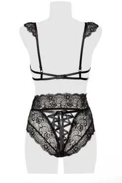 Set aus Spitze mit floralem Muster. BH mit angesetzten Flügelärmchen.