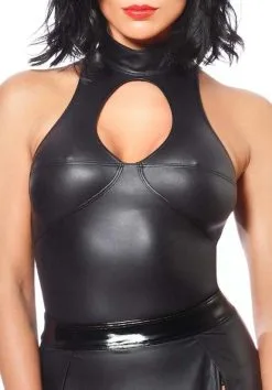 Kunstleder-Set mit Corsagenoberteil und Stulpen zum anstrapsen.