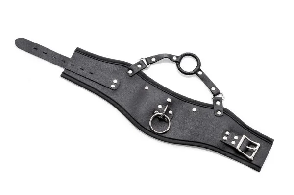 Diese verstellbare Halsband zwingt den Kopf in eine unterwürfige Position.