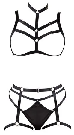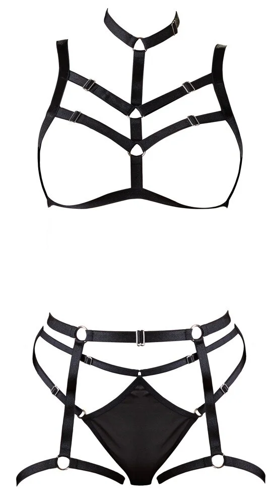 Dieses 3-teilige Harness-Set sieht elegant und verrucht aus und verströmt einen heißen Bondage-Vibe. Das Material ist mit Elasthan ausgestattet und hat mehrere verstellbare Schnallen für den idealen Tragekomfort.