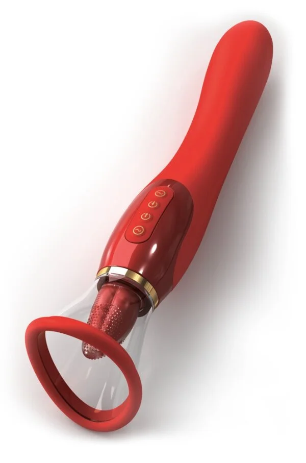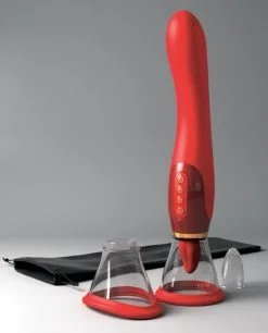 Die Rundum-Befriedigung in der Luxus-Version! Dieser 3 in 1-Vibrator erfüllt jeden Wunsch: Der leicht gebogene Schaft erreicht spielend leicht die G-Zone und stimuliert mit 10 Vibrationsmodi. Die andere Seite des 3 in 1-Toys ist ausgestattet mit einem Klitorisstimulator in 7 Bewegungsmodi und einer Saugschale, mit 3 Saugmustern, die per Knopfdruck ein Vakuum erzeugt. Diese verfügt über eine Vakuum-Release-Funktion und garantiert damit sicheren Spaß. Die Saugschale ist abnehmbar und alle Funktionen können separat gesteuert werden. Wasserfest für sicheren Spaß in Bad und Dusche. Inklusive USB-Ladekabel und Reisetasche.