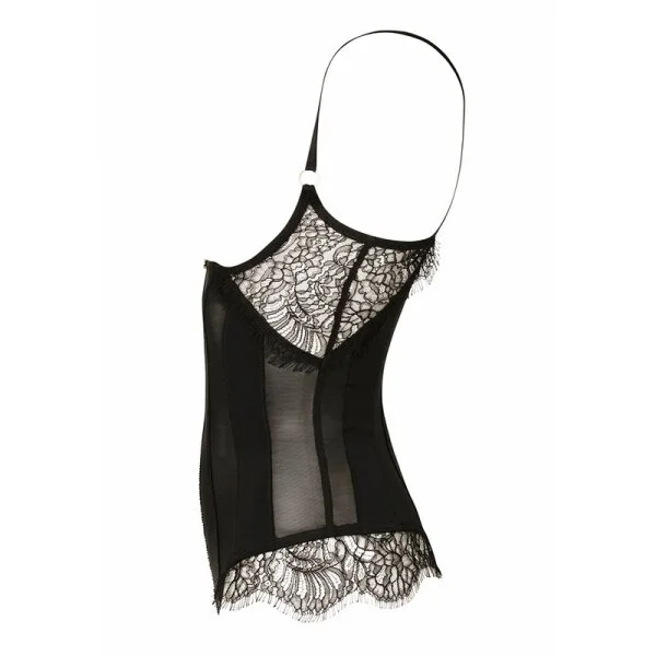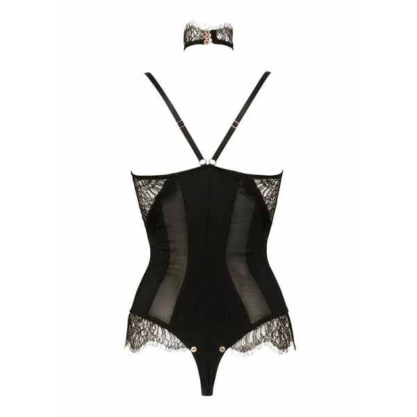 Busenfreier Stringbody. Eine Kombination aus Mesh und Spitze. Halsschmuck aus Spitze mit verstellbaren Harness.