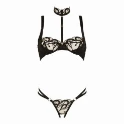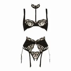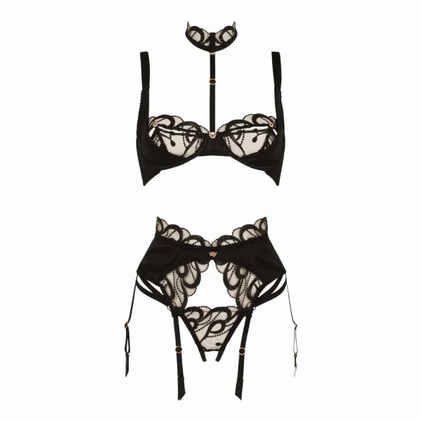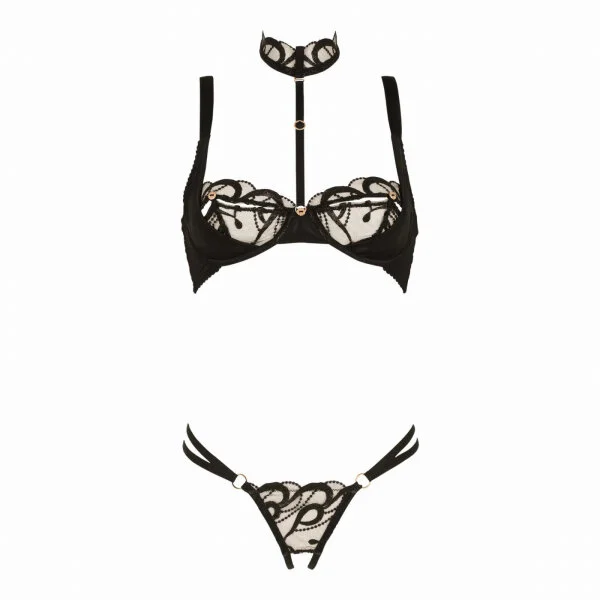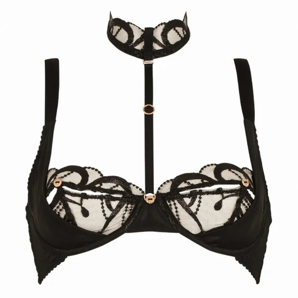 Ein BH mit viel Spitze und abnehmbaren Harness und Halsband.
