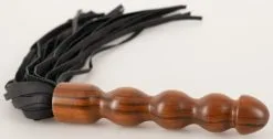 Hochwertiger robuster Leder Flogger Wood mit massivem Holzgriff. Der geschwungene, glatt polierte Griff mit schöner Holzmaserung (variiert) liegt gut in der Hand und lässt sich auch intim einführen. Und mit den weichen Lederstriemen bekommt jede:r genau das, was sie/er verdient: Streicheleinheiten oder die harte Tour.