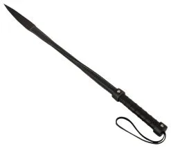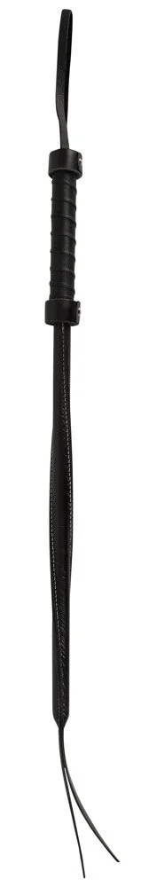 Hochwertige lange Gerte Leder Twisted Whip mit doppelt gearbeiteter Spitze. Die in sich gedrehte Ledergerte eignet sich perfekt fürs präzise Schlagen, wobei die doppelte Schlagspitze wunderbar geräuschvoll zischt und klatscht. Der umwickelte Griff liegt dabei mit seiner Halteschlaufe gut in der Hand und sorgt für einwandfreies Führen.
