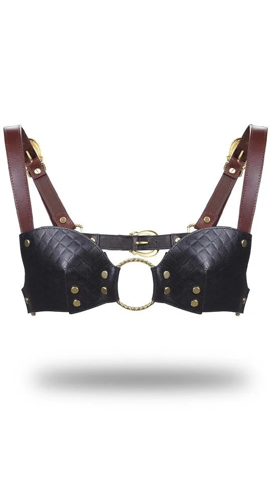 Liebe Seele Leder-BH Schwarz-Braun-Gold