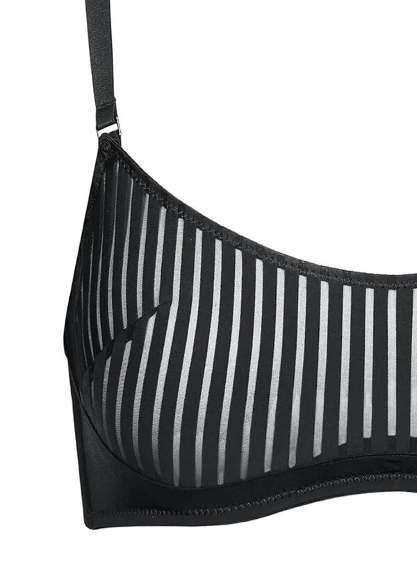 Diese Kollektion wurde durch den Kinofilm „Bande à part“ von Jean-Luc Godard inspiriert und zeichnet sich durch grafische Linien aus. BH-BH ohne Cups. Ein Band unter den Bügeln sorgt für eine einwandfreie Unterstützung der Brust. Die Träger sind hinten individuellverstellbar.
