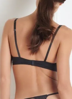 Diese Kollektion wurde durch den Kinofilm „Bande à part“ von Jean-Luc Godard inspiriert und zeichnet sich durch grafische Linien aus. Der Push Up BH hat herausnehmbare Polster. Die Träger sind hinten individuellverstellbar.