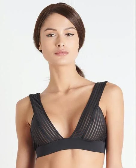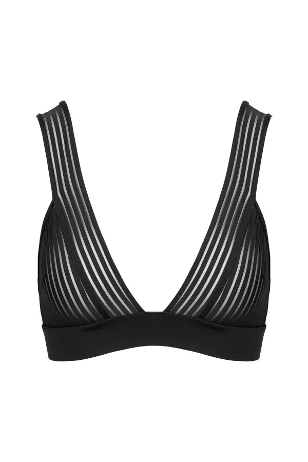Diese Kollektion wurde durch den Kinofilm „Bande à part“ von Jean-Luc Godard inspiriert und zeichnet sich durch grafische Linien aus. Der bügellose Triangel BH hat einen unwiderstehlichen tiefen V-Ausschnitt. Ein Band unter den Körbchen sorgt für eine einwandfreie Unterstützung der Brust. Die Träger sind hinten individuellverstellbar.