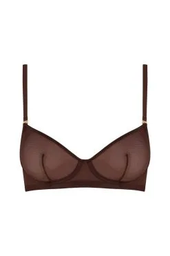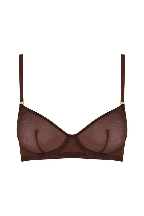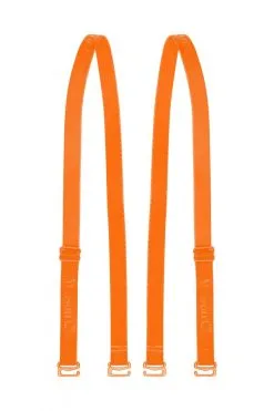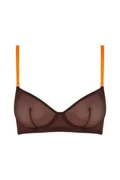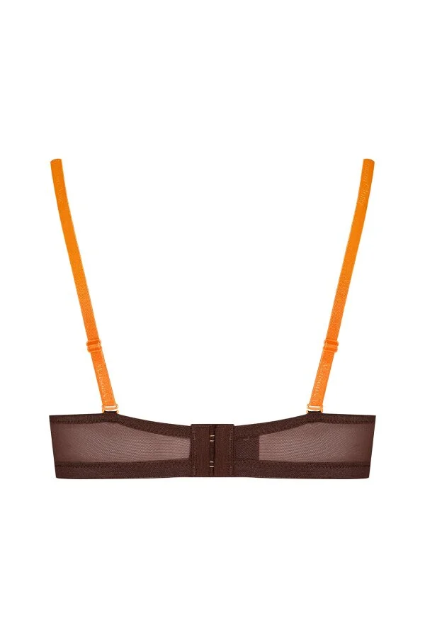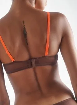 Bügel-BH aus transparentem und hauchzartem Tüll. Als Accessoires werden zwei verschiedenfarbene Schulterträgera mitgeliefert. Einmal in Neonorange und einmal in Braun.
