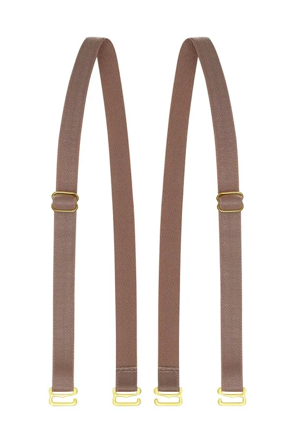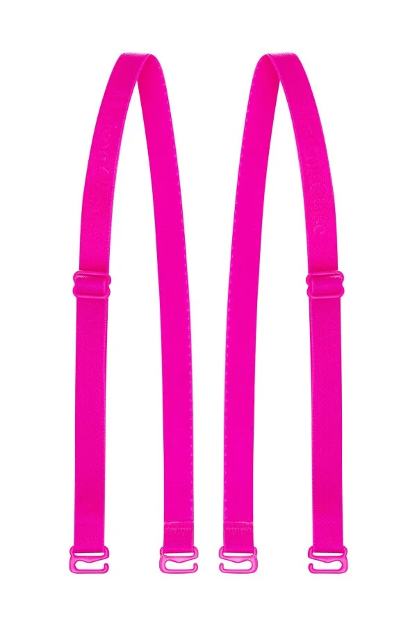Bügel-BH aus transparentem und hauchzartem Tüll. Als Accessoires werden zwei verschiedenfarbene Schulterträgera mitgeliefert. Einmal in Neonpink und einmal in Braun.
