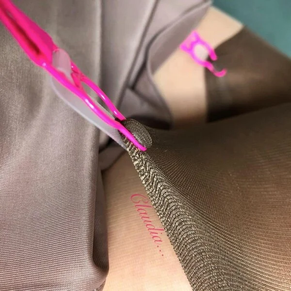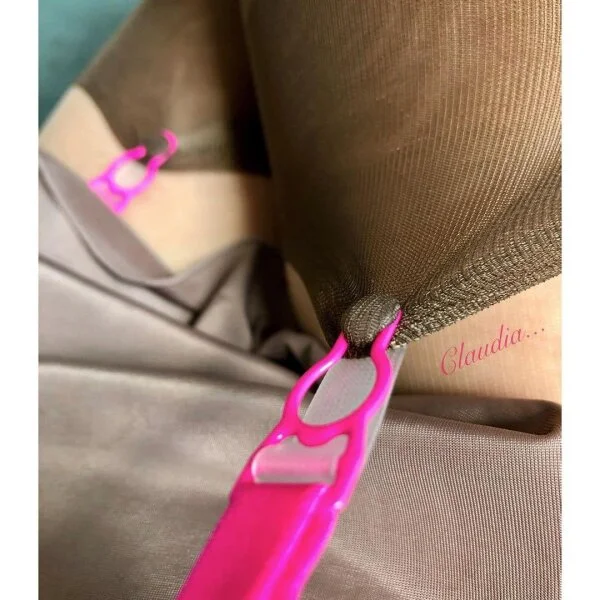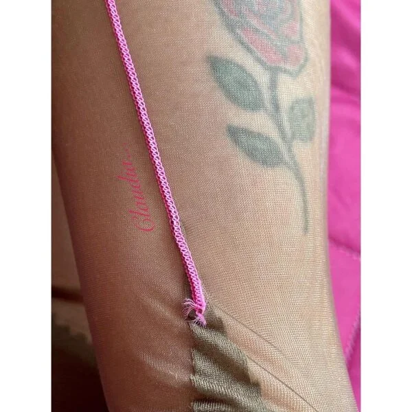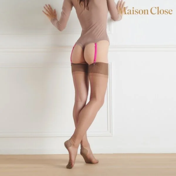 Maison Close Retro Nylons Taupe mit neonpinker Naht