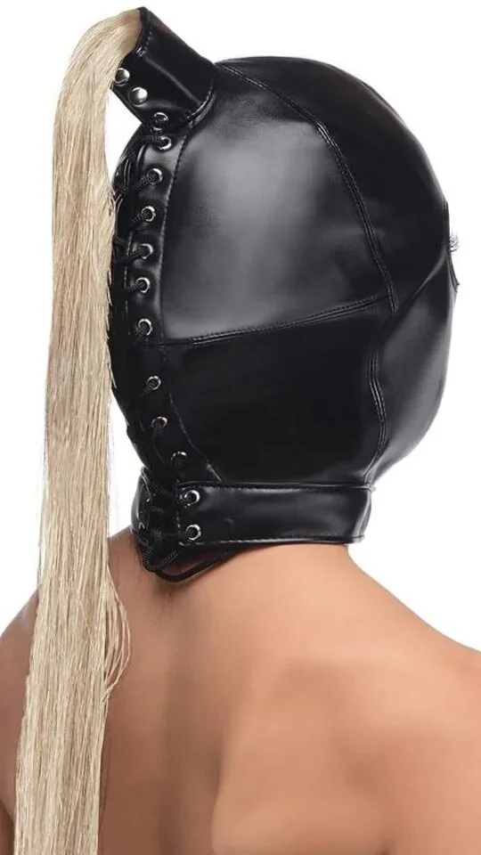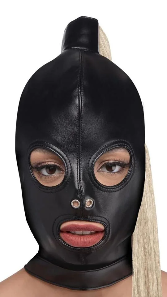 Kunstledermaske mit weichem Innenfutter, um sich sanft an das Gesicht zu schmiegen und gleichzeitig die Gesichtszüge zu verbergen. Hinten mit Schnürung. Lieferung in Einheitsgröße.