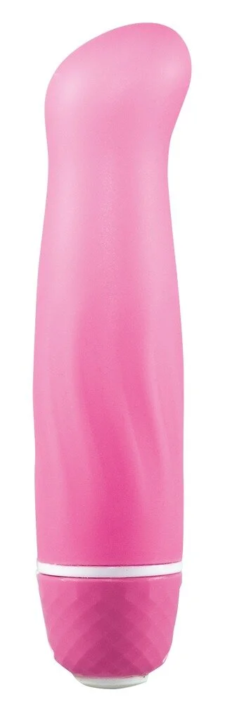 Minivibrator mit geneigtem Kopf und strukturiertem Schaft in der Trendfarbe Pink – lässt sich super in jeder Handtasche verstauen und ist der ideale Begleiter auf Reisen…