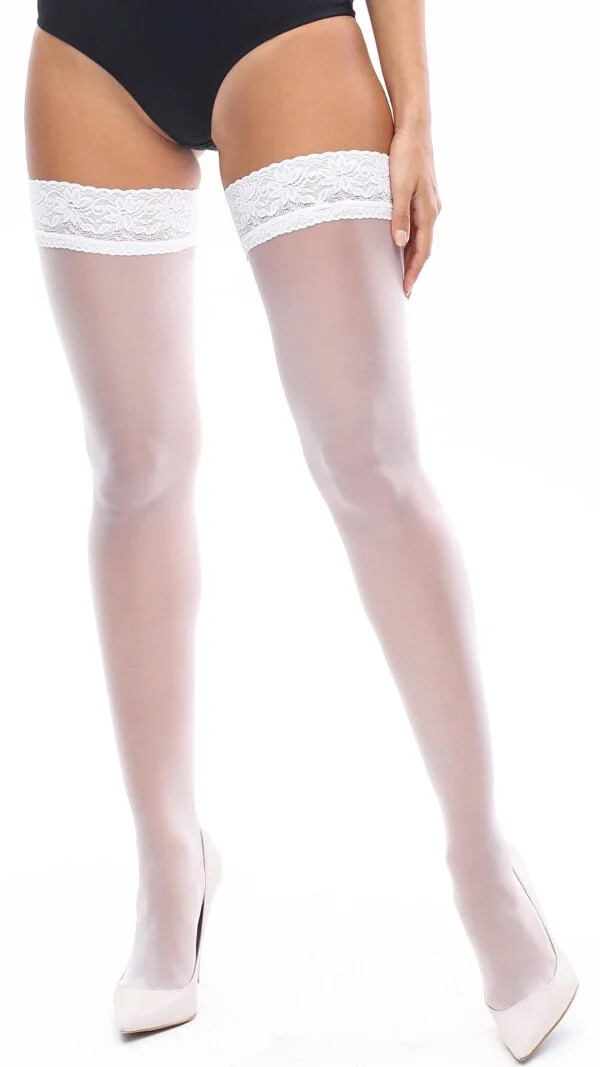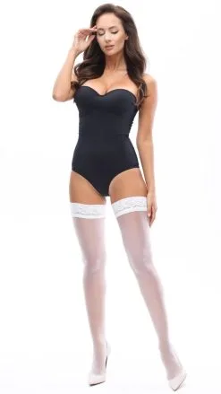 Halterlose Strümpfe in 15 DEN mit einem breiten Spitzenrand. 84%Polyamid, 16%Elasthan.