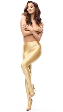 Miss O Wetlook Ouvert Strumpfhose Gold
