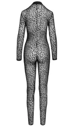 Dieser vollständig bedeckende und gleichzeitig durchsichtige Leoparden-Flock Catsuit hat einen Zwei-Wege-Reißverschluss. Materialzusammensetzung: 84% Polyester, 16% Elasthan.