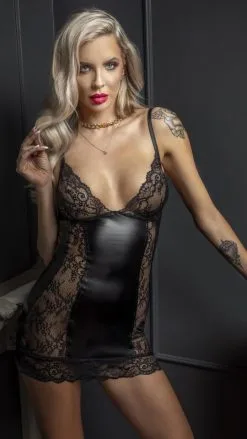 Aufregendes Powerwetlook-Kleid mit Spitzeneinsätzen. Verdeckt genug um der Fantasie der Bewunderer genug Spielraum zu lassen.Materialzusammensetzung: 80% Polyester, 20% Elasthan.