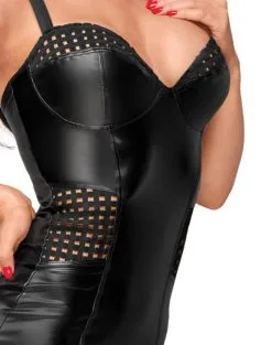 Elegantes Powerwetlook Kleid mit elastischen Einsätzen an Taille und Büste, die die femininen Formen betonen. Die bequemen Träger sind verstellbar und auf dem Rücken gekreuzt.Materialzusammensetzung: 80 % Polyester, 20 % Elasthan.