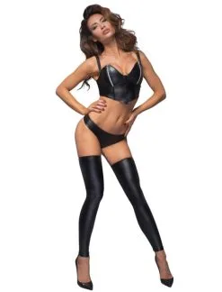 Klassische Powerwetlook Stockings und Panties mit silbernem