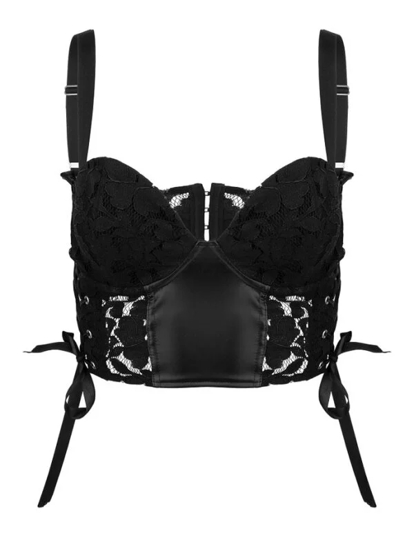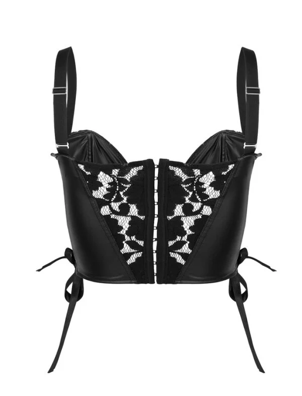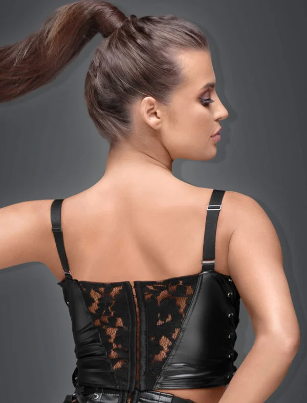 Noir Handmade Wetlook Top mit schwarzer Spitze