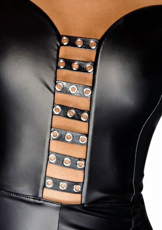 Heißes Wetlook Kleid mit Circle-Rock, langen Ärmeln, Nietenverzierung