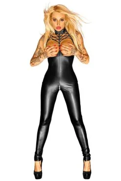 Heißes Wetlook mit nacktem Busen und verziertem Dekolleté und Stehkragen