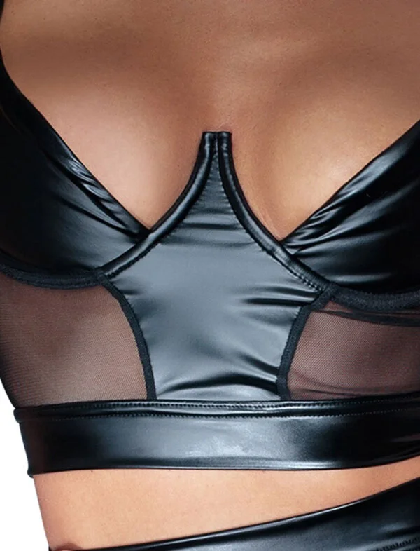 Top aus Powerwetlook und transparenten Mesheinsätzen mit verführerischem