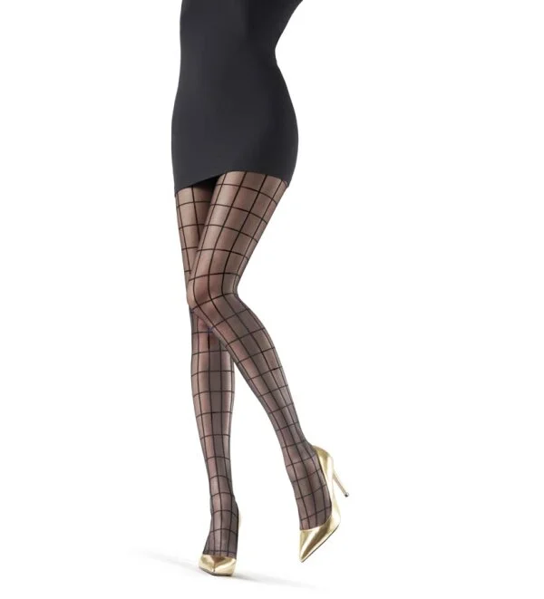 Transparente 20 DEN Strumpfhose mit geometrischem Motiv. 93 % Polyamide,