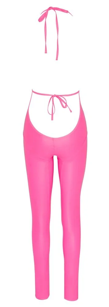 Overall inklusive Riostring von Cottelli PARTY im auffällig neonpinkfarbenen Mattglanz. Der mit schmalem langem Bein geschnittene Overall ist vorne extra tief bis zum Bauchnabel ausgeschnitten. Der Neckholder ist zum Binden, genauso wie das Taillenband im bis zum Po ausgeschnittenen freien Rücken. Das weiche elastische Material sorgt für optimalen Sitz und hohen Tragekomfort. 90% Polyester, 10% Elasthan, Polyurethan-Beschichtung.