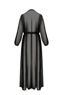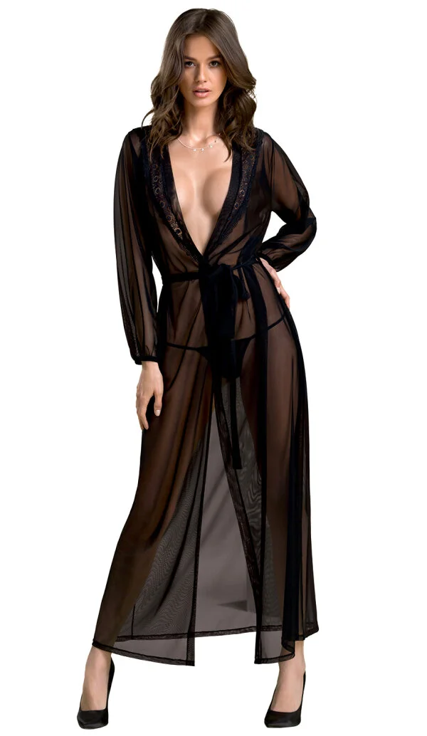 Der erotische Hausmantel besteht aus einer harmonischen Mischung aus sehr weichem und dehnbarem Chiffon-Schleier und floraler Spitze.