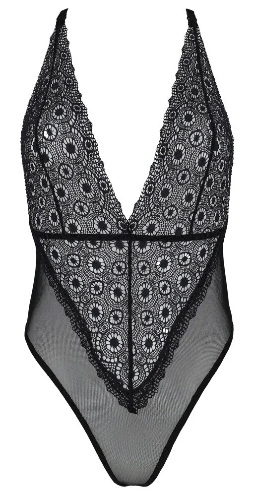 Softer anschmiegsamer Zinnia Body aus der Eco Collection von Passion aus elastischem Powernet mit fantasievoller Spitze in der Front. Verführerisches Rio-Styling mit extra tiefem Dekolleté und Hakenverschluss im Schritt. Im freien Rücken kreuzen sich die Träger in einem Ring und sind für optimale Passform verstellbar.