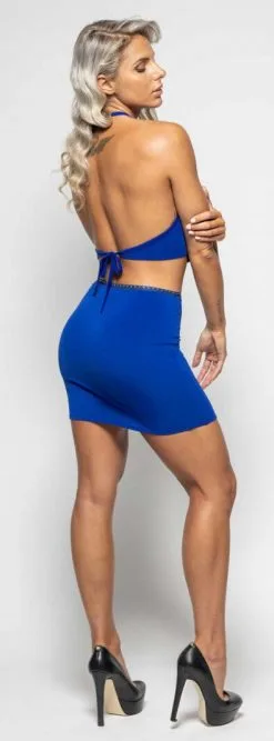 Das Top besteht aus Lycra, einem dehnbaren Stoff, der sehr bequem und leicht zu tragen ist. Hinten geschnürt.